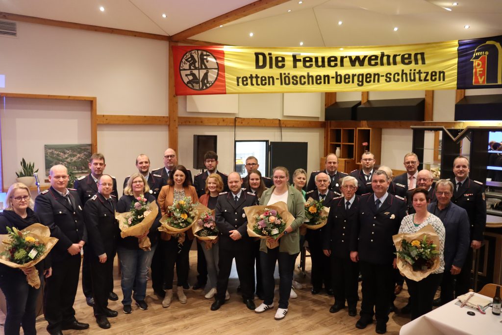 Alle Beförderten zusammen mit dem Kreisbrandmeister Daniel