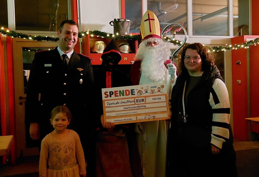 Zudem kam der Nikolaus mit seinem Gehilfen zu Besuch und lies die Kinderaugen strahlen. Ortsbrandmeister Sascha Jung überreichte in diesem Jahr eine Spende in höhe von 250 Euro an den Förderkreis der Emlichheimer Kita „Kleiner Leuchtturm“, welcher von Melanie Koers sehr dankbar entgegen genommen wurde.