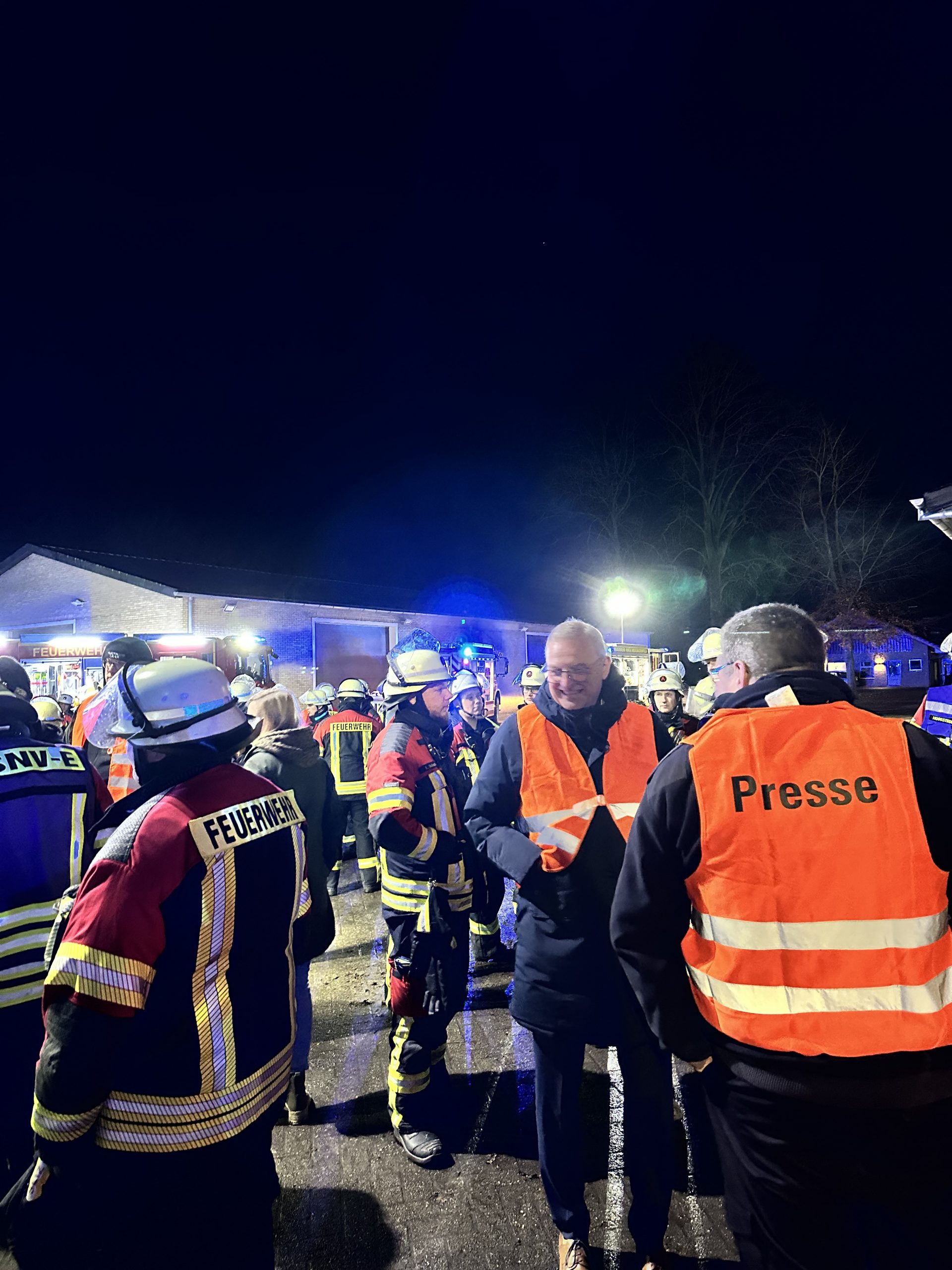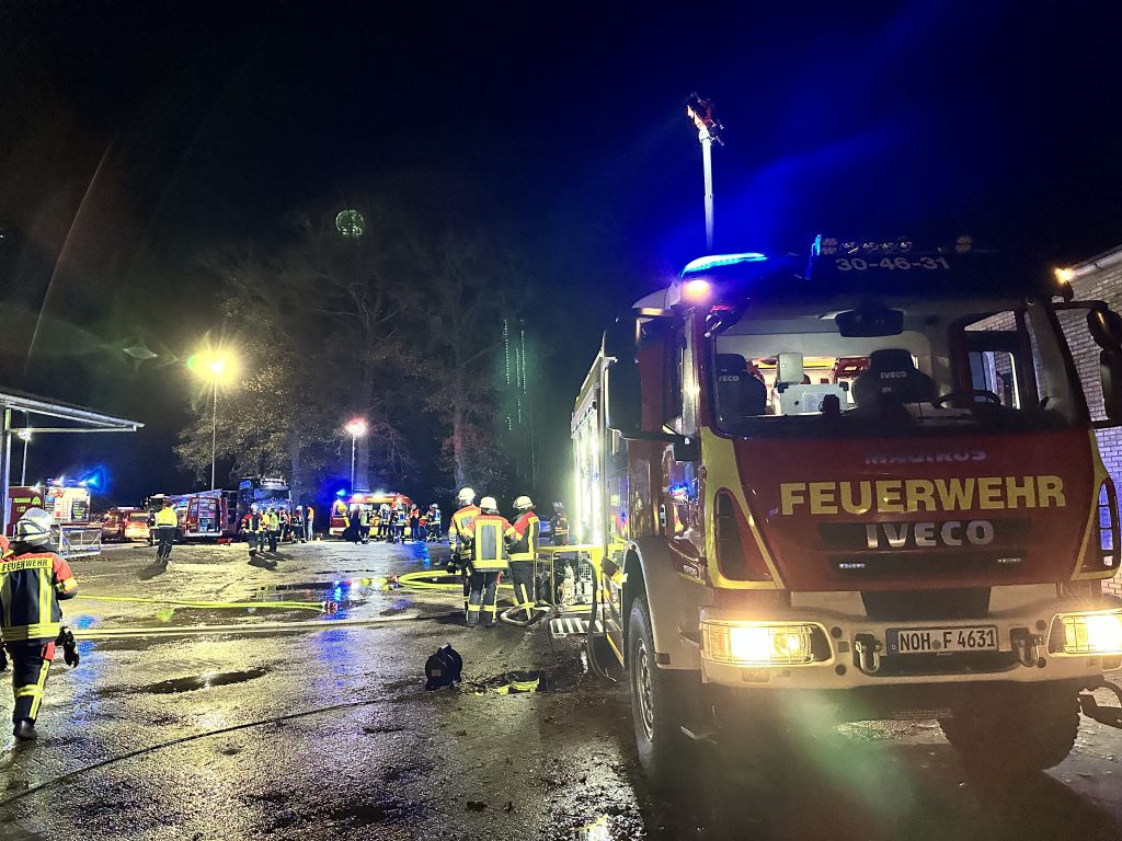 Ihm wurde klar, dass aufgrund der Vielzahl an Aufgabenbereichen mehr Einsatzkräfte und mehr Feuerwehrtechnisches Equipment von Nöten sind, um alle Einsatzabschnitte zu bewältigen und löste einen Vollalarm für die Ortsfeuerwehren der Samtgemeinde Emlichheim aus. (Alarmstufenerhöhung auf „F4_Gebäude“). Auch das Wechselladerfahrzeug des Landkreises (stationiert in Neuenhaus) wurde hinzugezogen.