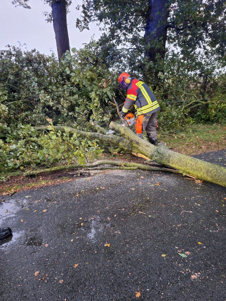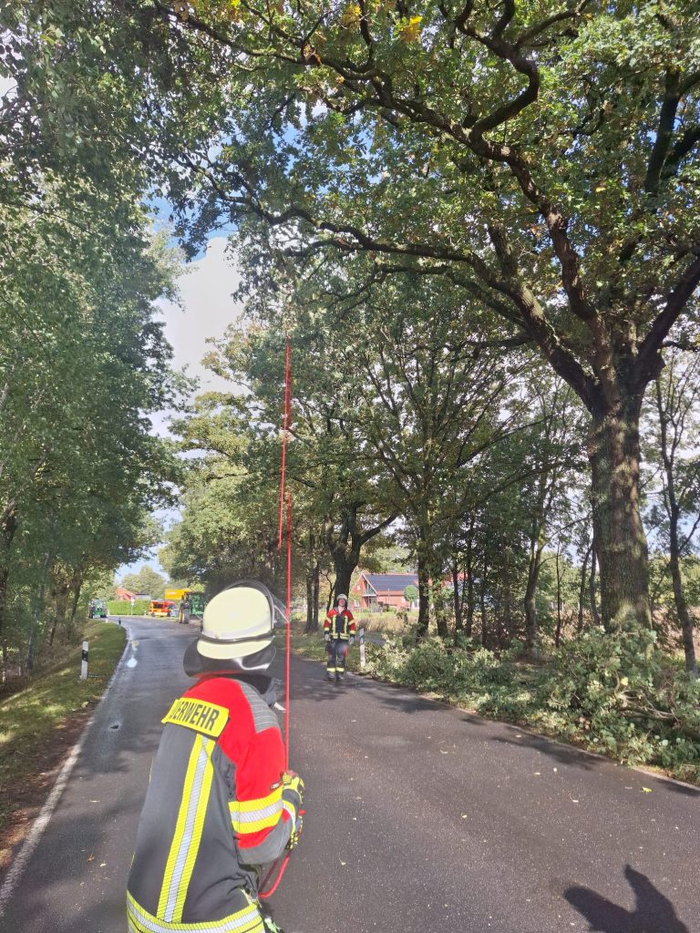 Um 7.45 Uhr ging es für die Hoogsteder Einsatzkräfte in die Vechtetalstraße. Dort beseitigten sie mit Hilfe der Motorsäge einen dickeren Ast, der aus einem Baum herausgebrochen war und die Fahrbahn blockierte.