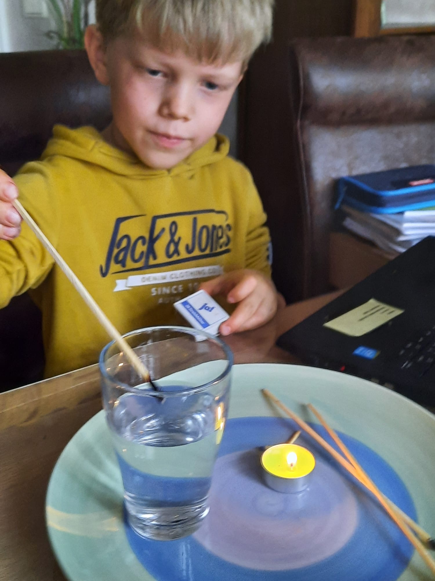 Zu allererst wurden die Regeln erläutert und besprochen (nach Kain Karawahn „Faszination Feuer! – Kinder lernen den verantwortungsvollen Umgang mit Feuer- ein Spielvorschlag“): Fenster und Türen geschlossen, lange Haare zum Zopf binden, Ärmel hoch, feuerfeste Unterlage und Glas Wasser bereithalten, nicht unter hängenden Lampen Feuer machen und niemals ohne einen Erwachsenen mit Streichhölzernexperimentieren. Wie in dem Buch erklärt wird, macht man zuerst immer „Trockenübungen“, bevor man mit brennenden Streichhölzern hantiert und zu guter Letzt hatte jedes der Feuerfüchse ein brennendes Teelicht und war ganz stolz.