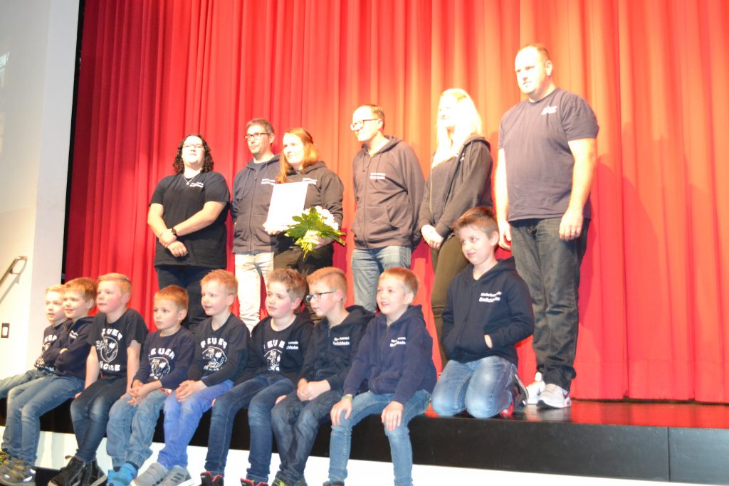 Im Anschluss einiger Reden war die Bekanntgabe der Bürgerin/Bürger des Jahres 2020. Daniela Kösters freute sich darüber, erstmals eine Frau zu ehren: nämlich die Kinderfeuerwehrwartin der Feuerfüchse, Sarah Helweg. Für ihr ehrenamtliches Engagement und der Gründung eben dieser Kinderfeuerwehr und der damit verbundenen Arbeit, war diese Ernennung eine sichtlich besonders Schöne. Sarah Helweg bedankte sich vielmals über diese Entscheidung, betonte aber auch, dass es ohne ihrem Team, dem Rückhalt aus der gesamten aktiven Feuerwehr und ihrer Familie nicht funktionieren würde.
