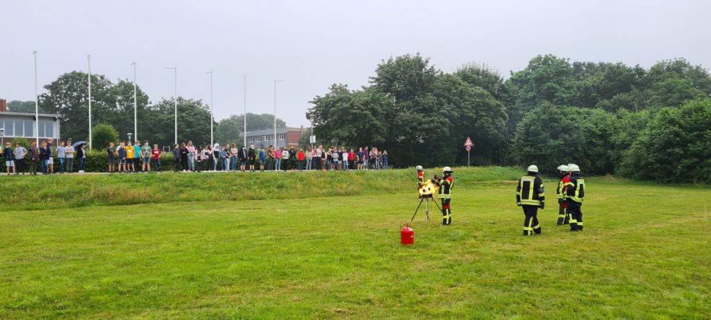 Am Dienstagvormittag, versammelten sich einige Betreuer der Samtgemeindejugendfeuerwehren, um den Schülern der 5. und 6. Klasse der Edith-Stein-Realschule Emlichheim eine Fettverbrennung zu simulieren.