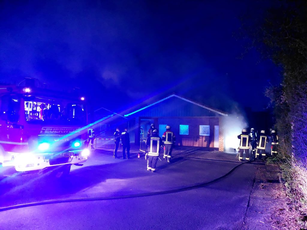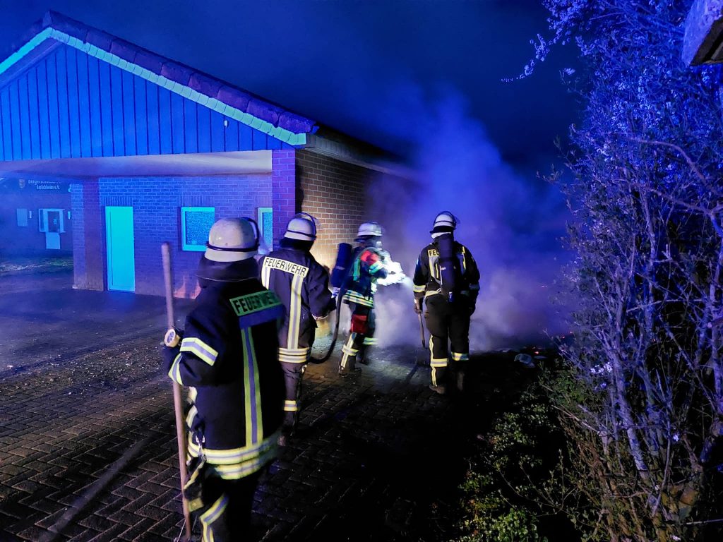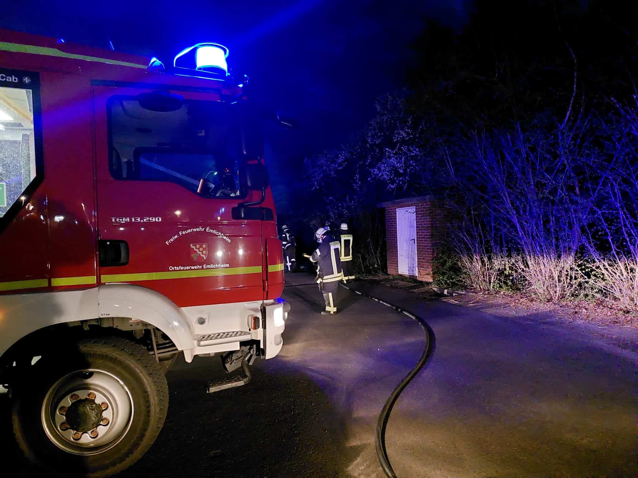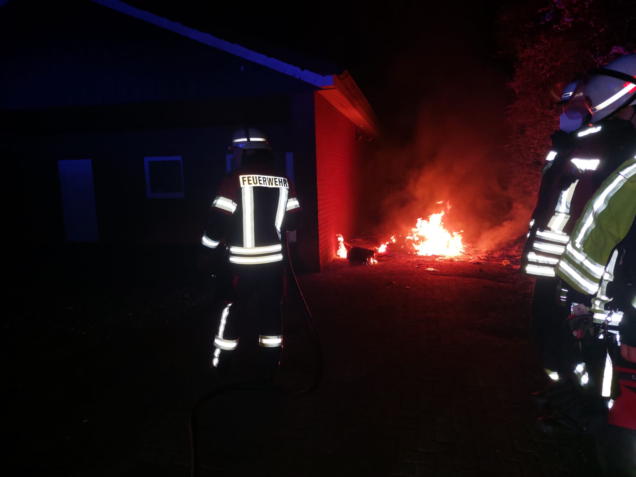 Zum Schützenplatz wurde am Sonntagabend gegen 20:45 Uhr die Ortsfeuerwehr Emlichheim mit dem Alarmstichwort „F2-Sonstiges“ alarmiert. Spaziergänger entdeckten eine brennende Mülltonne am angrenzenden Gebäude.