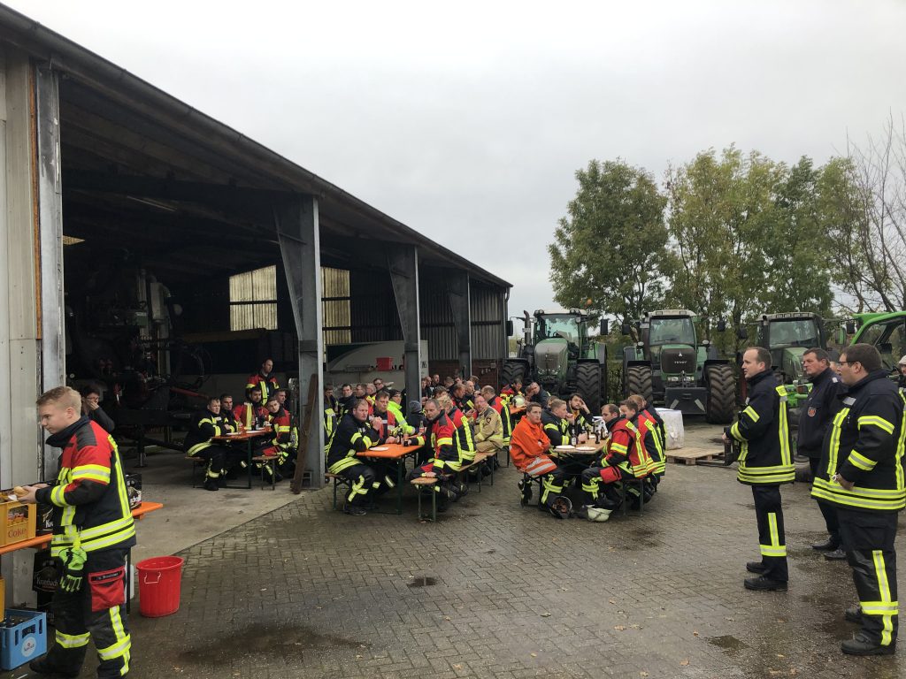 Zur kleinen Stärkung gab es anschließend ein paar Getränke und Würstchen vom Grill, welche die Familie des landwirtschaftlichen Betriebes den Kameraden gesponsert hatte. Vielen Dank an dieser Stelle dafür!!
