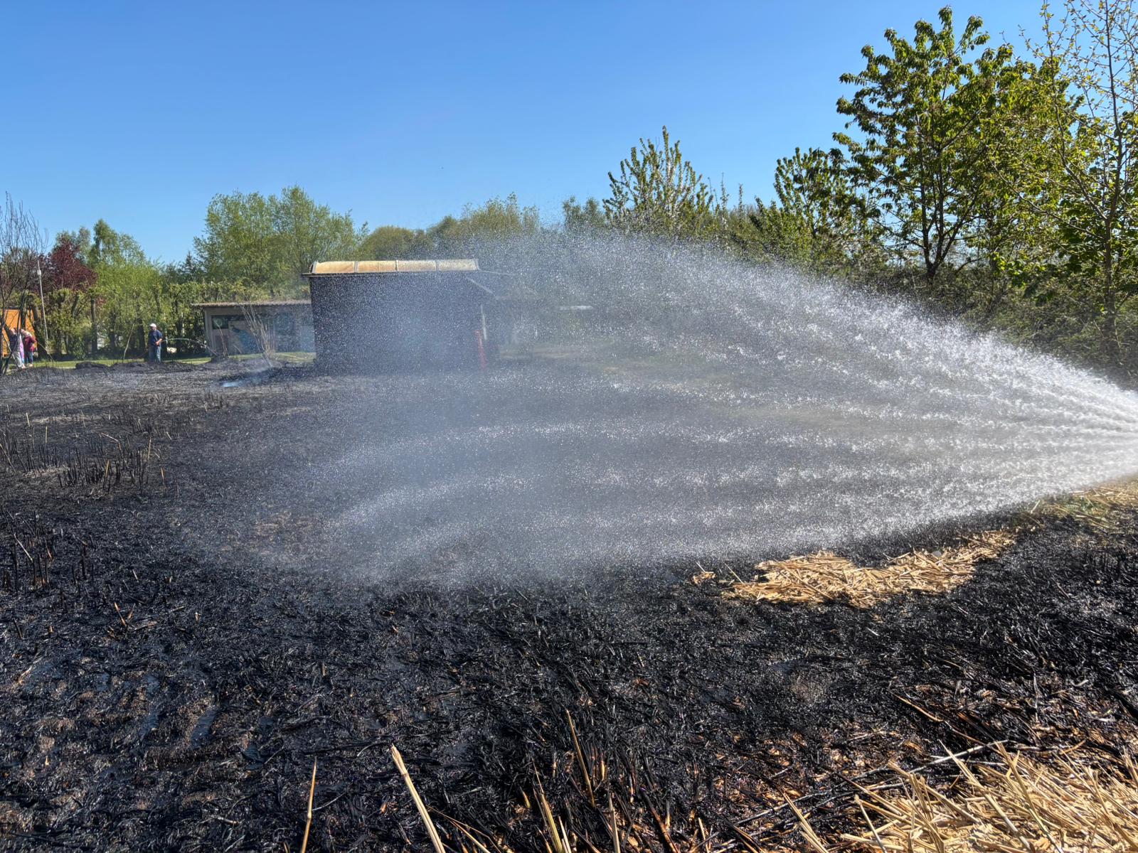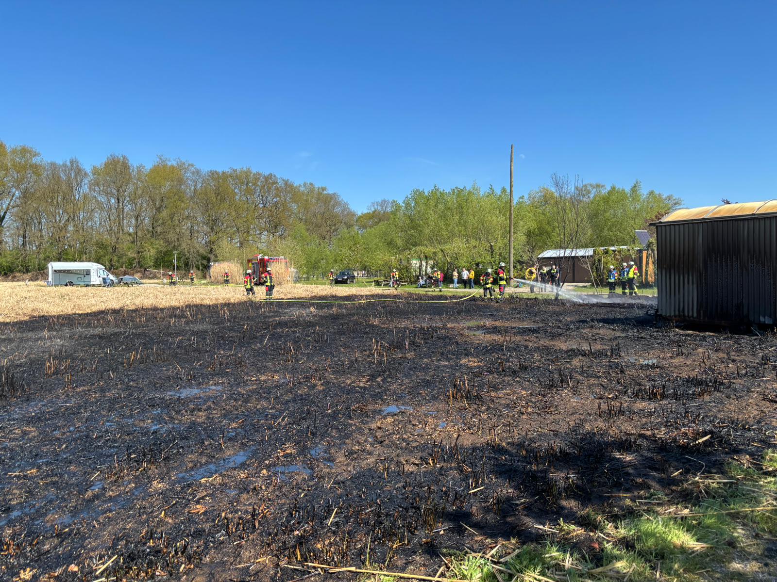 Vor Ort stellte sich allerdings heraus, dass es sich um einen Flächenbrand handelt. Mehrere Quadratmeter Stoppelfeld sind in Brand geraten. Die Laarer Einsatzkräfte konnten den Brand schnell unter Kontrolle bringen. Alle weiteren Einsatzkräfte konnten ihre Einsatzfahrt abbrechen.