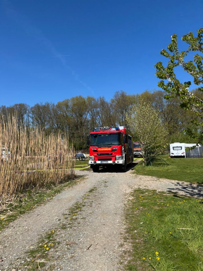 Heute Nachmittag um 14.30 Uhr wurde die Ortsfeuerwehr Laar zusammen mit weiteren Einsatzkräften der Samtgemeindefeuerwehr zu einem gemeldeten Fahrzeugbrand nach Eschebrügge alarmiert. (Alarmstichwort „F3_Fahrzeug“)