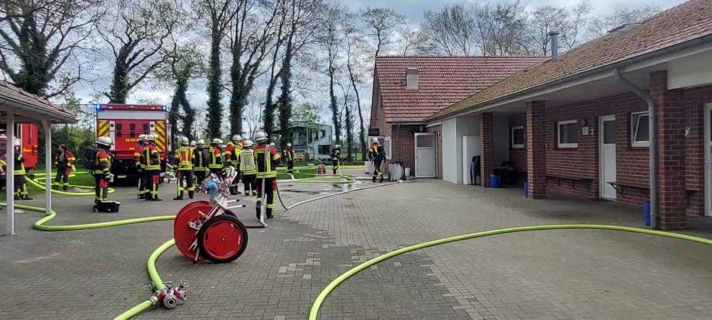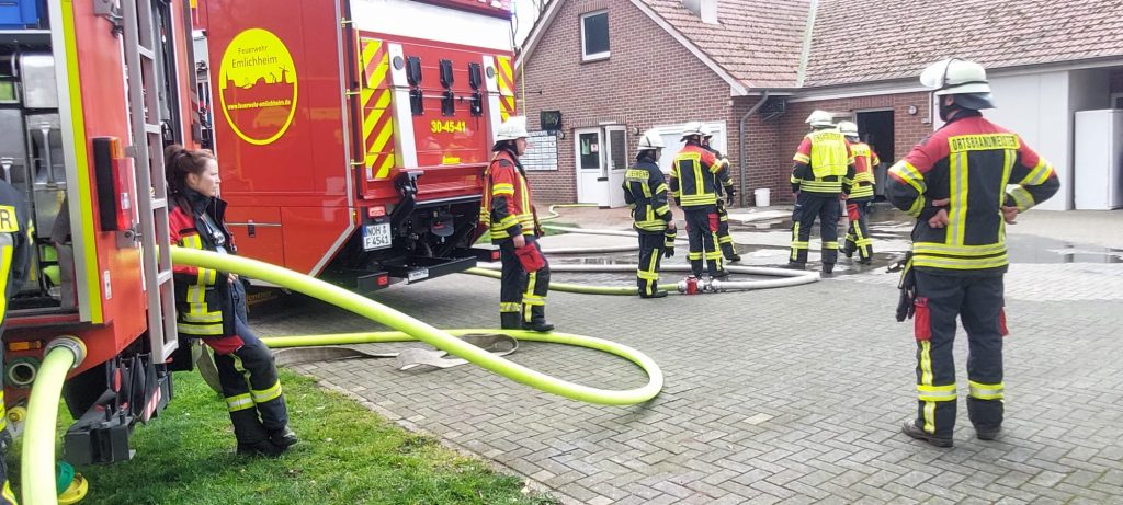 Nach ca. zwei Stunden konnte “Feuer aus“ gemeldet werden. Da im Einsatzverlauf viele Schläuche zur Wasserversorgung und Atemschutzgeräte bei der Brandbekämpfung benötigt und durch den Brandrauch kontaminiert wurden, kam ein Mitarbeiter der Feuerwehrtechnischen Zentrale in Nordhorn (FTZ) zum Gerätehaus nach Emlichheim. Hier wurden die gebrauchten Schläuche und Atemschutzgeräte getauscht. Um 16.00 Uhr war der Einsatz beendet. Es waren 42 Einsatzkräfte der Ortsfeuerwehren Laar und Emlichheim im Einsatz. Drei Einsatzkräfte waren mit der HRB aus Coevorden vor Ort. Auch Polizei und ein Rettungswagen vom DRK zur Eigensicherung waren ebenfalls im Einsatz.