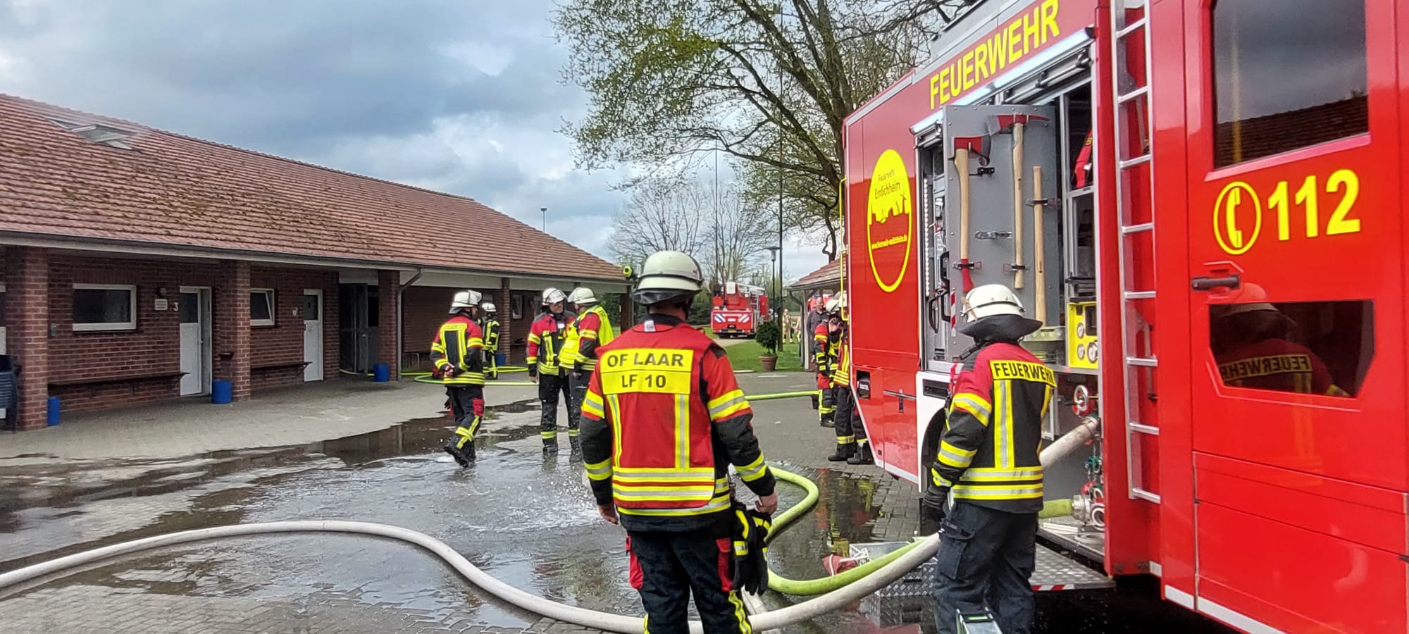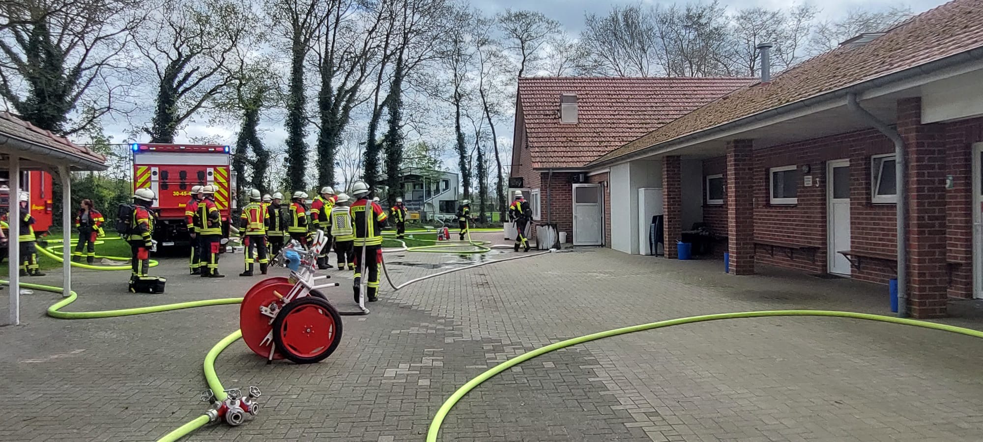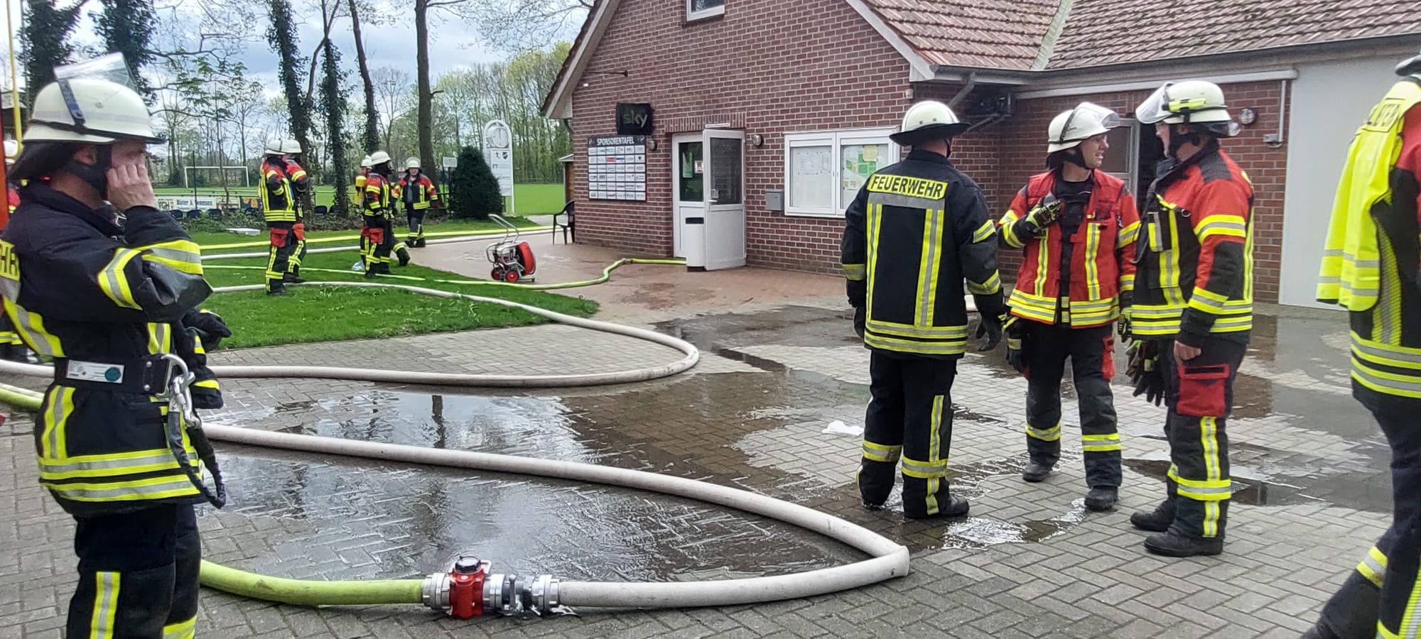 Heute Mittag gegen 13.10 Uhr wurden die Ortsfeuerwehren Laar und Emlichheim mit dem Alarmstichwort „F3_Dachstuhlbrand“ an die Coevordener Straße alarmiert. Vor Ort wurde eine starke Verrauchung eines Gebäudes des ansässigen Sportvereins festgestellt.