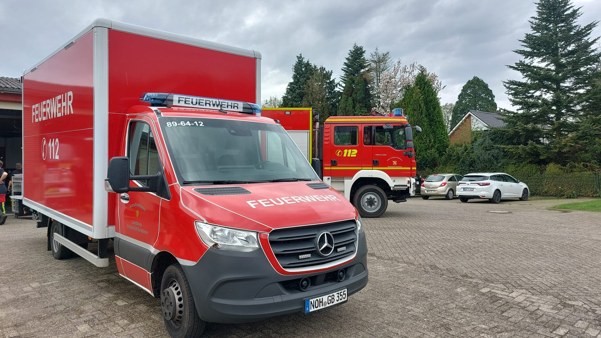 Umgehend wurden daraufhin auch die Kameradinnen und Kameraden der Brandweer aus Coevorden mit der Hubrettungsbühne alarmiert. Mehrere Trupps aus Laar und Emlichheim gingen unter schwerem Atemschutz zum Brandherd in das Gebäude vor. Durch die enorme Temperatur im Inneren sind kurz vorher einige Scheiben zerborsten. Eine Wasserversorgung vom ca. 300 Meter entfernten Löschwasserbrunnen wurde aufgebaut und zwei Leitungen zu den Fahrzeugen aus Laar und Emlichheim verlegt. Der Einsatzleitwagen wurde durch zwei Einsatzkräfte der ELW-Gruppe aus der Ortsfeuerwehr Hoogstede und Ringe/Neugnadenfeld besetzt.