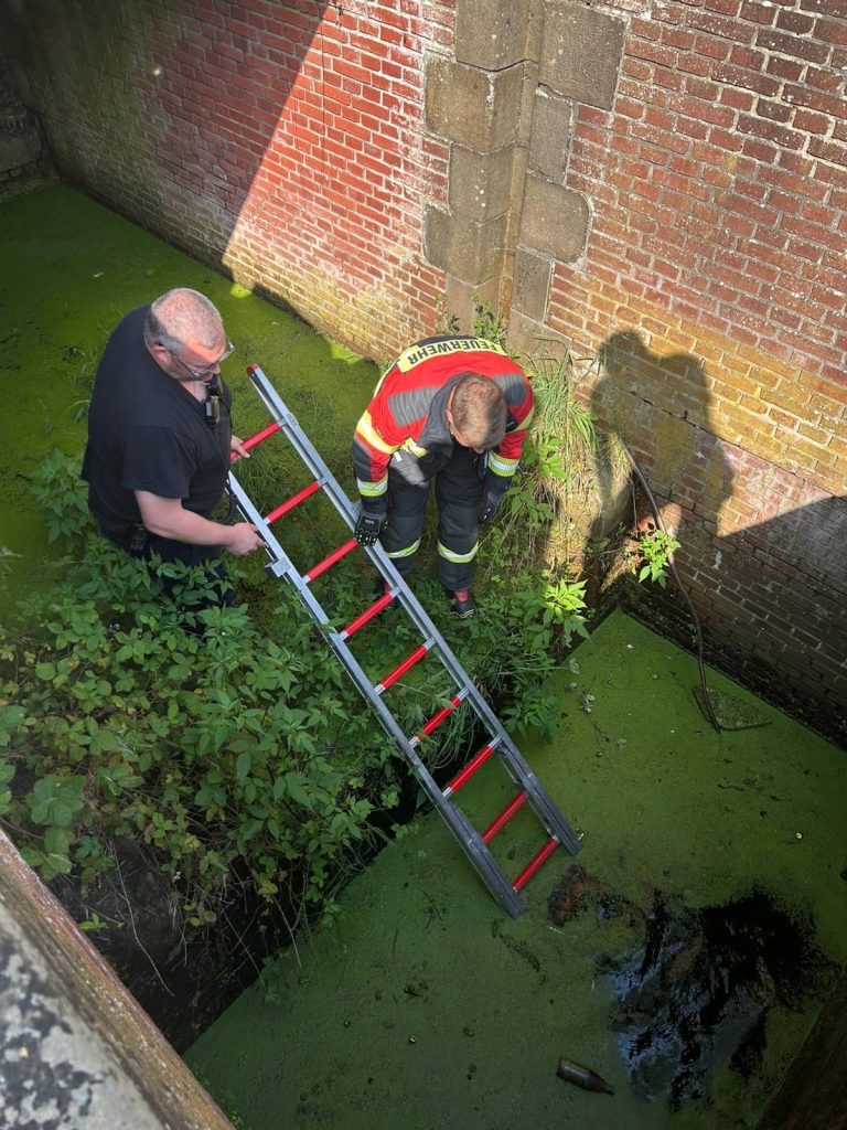 Heute Nachmittag um 16 Uhr musste die Ortsfeuerwehr Emlichheim zu einer Tierrettung in den Hahneberger Diek ausrücken.
