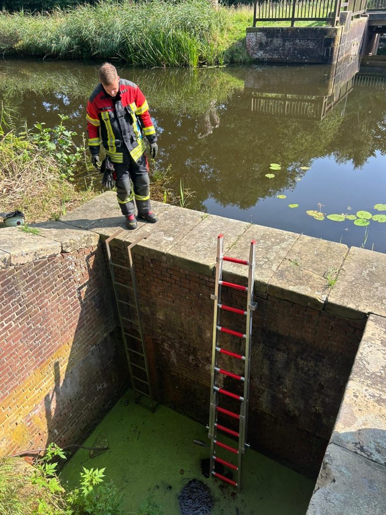 Am dortigen Coevorden-Piccardie-Kanal konnte sich ein Otter nicht mehr eigenständig aus einem Überlaufbecken befreien. Die Einsatzkräfte verschafften sich Zugang zum Becken und haben das Tier in ein Überlaufrohr getrieben, wo es sich dann letztlich selber aus seiner misslichen Lage befreien konnte. Im Anschluss war der Einsatz beendet.