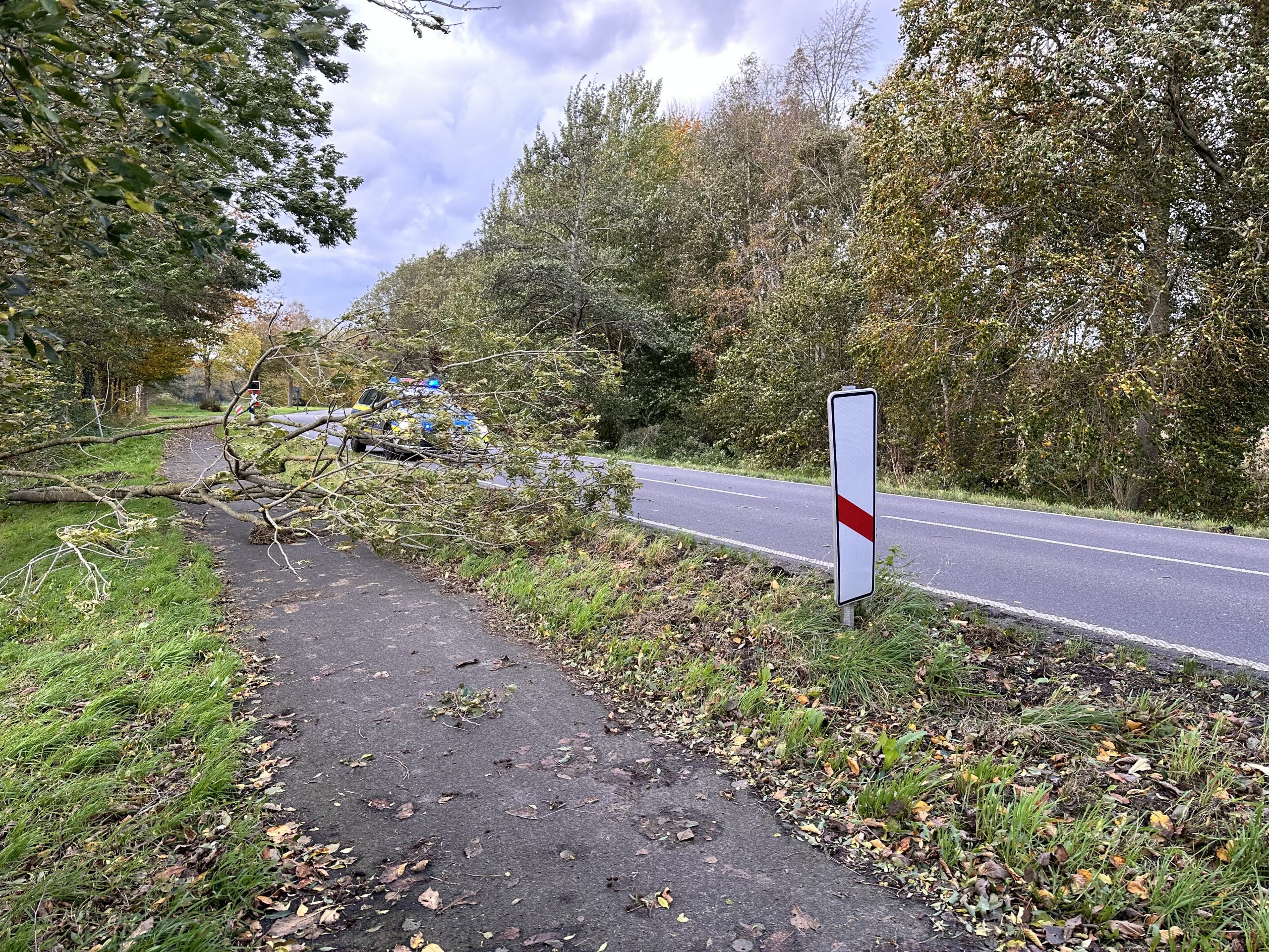 Der Baum versperrte den dortigen Radweg und Teile der Straße. Die sieben mit dem HLF ausgerückten Einsatzkräfte beseitigten den Baum mit Hilfe der Motorsäge und räumten ihn in den Seitenraum. So war der Einsatz zügig abgearbeitet und man konnte nach zügig zum Feuerwehrhaus zurückkehren.